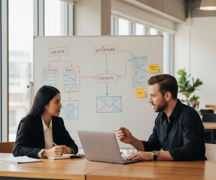 - กำหนดเป้าหมาย : อยากได้เว็บไซต์แบบไหน? เน้นขายของ หรือแค่ให้ข้อมูลธุรกิจ?