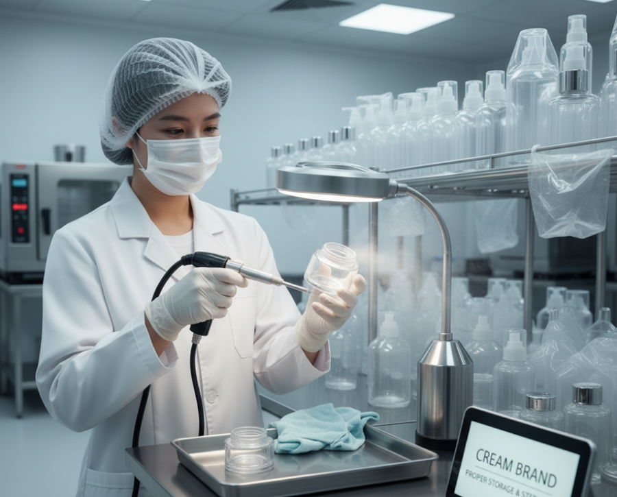 มาดูวิธีดูแลและทำความสะอาดบรรจุภัณฑ์เครื่องสำอางก่อนบรรจุ! สำคัญมากต่อการ สร้างแบรนด์ครีม ให้สะอาด ปลอดภัย และมีคุณภาพสูงสุดถึงมือลูกค้าค่ะ